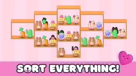 ¡Sumérgete en un mundo magníficamente animado lleno de adorables personajes y dulces! La mecánica principal gira en torno a la clasificación, colocando perfectamente una amplia gama de artículos kawaii en coloridos estantes. Con imágenes armoniosas y una banda sonora relajante que te acompaña a través de cada nivel, este en línea el juego ofrece un escape placentero del ajetreo diario. ¡Su ambiente positivo es palpable, animándote a disfrutar del arte de la organización!