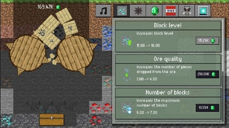 Para un juego sin problemas, simplemente usa tu ratón o toca en tu pantalla para realizar acciones. Mejorar es cuestión de hacer clic en los botones para seleccionar tus mejoras deseadas, mientras que las explosiones de TNT se activan automáticamente para mejorar tu experiencia de trituración de bloques.
