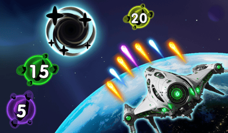 El movimiento se controla con las teclas de flecha o arrastrando la pantalla táctil para una maniobrabilidad óptima. La barra espaciadora (o tocar la pantalla) se usa para disparar rayos láser a los planetas que se acercan. ¡Administra tu tasa de disparo sabiamente para maximizar tu daño!