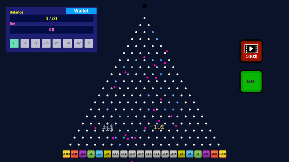 Los controles son increíblemente intuitivos. Toca la pantalla para seleccionar tu apuesta y lanzar tu bola. ¡Presta atención a las trayectorias de rebote, ya que la bola puede tomar caminos inesperados antes de aterrizar!