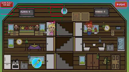 El juego gira en torno al tema atemporal de la rivalidad y la competencia. Ambientado en una vibrante arena, los jugadores controlan a una princesa o un fontanero, cada uno con habilidades distintas. El entorno dinámico del juego mantiene a los jugadores alerta, con elementos sorpresa como armas que aparecen aleatoriamente, añadiendo emoción. La combinación de juego estratégico y reflejos rápidos asegura que cada partida sea una experiencia única y emocionante.