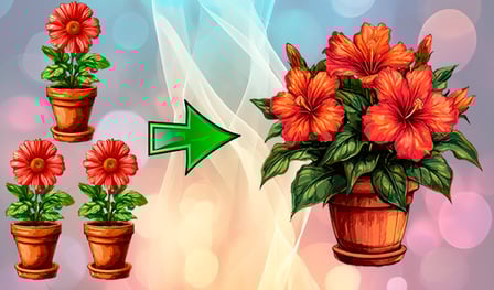 Comience su viaje simplemente arrastrando y soltando flores de su inventario en las macetas en su pantalla. En un teléfono, toque y mantenga presionada la flor para seleccionarla, luego toque la maceta para plantar. Para ordenador usuarios, usen su mouse para hacer clic y arrastrar las flores a su lugar. ¡Combinar flores similares da como resultado especies más grandes y vistosas que florecen y dan vida a su jardín!