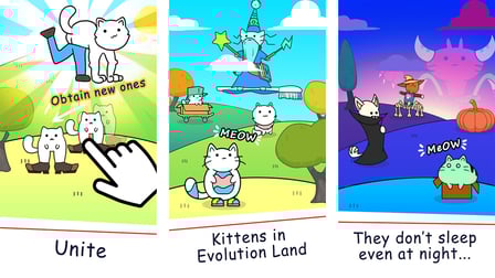 Comienza tu aventura fusionando gatos idénticos para crear nuevas razas. Arrastra y suelta los gatos uno encima del otro para iniciar el proceso de evolución. A medida que avances, desbloquea potenciadores para acelerar la fusión y completar varias tareas para obtener recompensas adicionales. Con cuatro planetas y múltiples zonas para explorar, siempre hay algo nuevo por descubrir y disfrutar.