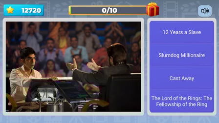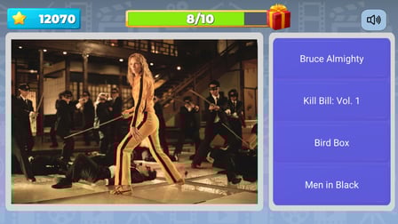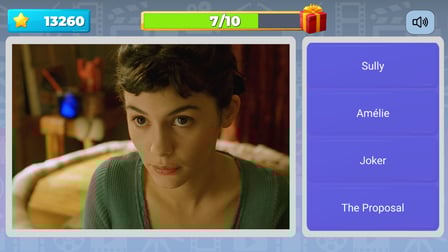 Quiz Guess Movie es un atractivo juego de preguntas informal en el que puedes poner a prueba tus conocimientos cinematográficos identificando películas a partir de fotogramas icónicos. Sumérgete en este juego lleno de diversión sin necesidad de descargas ni registro, y explora una amplia gama de películas nuevas y clásicas. Ya sea que seas un aficionado al cine experimentado o un espectador casual, hay algo para que todos disfruten. Este juego está diseñado para todas las edades, ofreciendo una experiencia inclusiva que abarca generaciones. Disponible en computadoras de escritorio, Android e iOS, Quiz Guess Movie es el ejercicio perfecto de entrenamiento cerebral que también funciona como un asesino del tiempo. Mejora tu memoria y desafía tu mente mientras compites por las mejores calificaciones de jugadores.