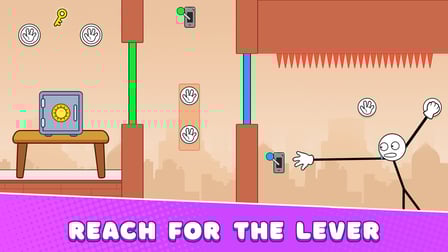 Los controles precisos son esenciales para un juego efectivo. Presiona las teclas de flecha para moverte direccionalmente y presiona la barra espaciadora para activar la mano larga de tu stickman. En el móvil, simplemente toca para moverte y arrastra para extender el brazo, alcanzar objetos o sortear obstáculos.