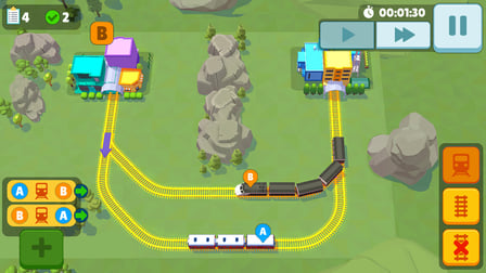 Comienza trazando tu vía de tren con el ratón en tu ordenador o tocando la pantalla de tu teléfono. Diseña vías que conecten estaciones mientras colocas estratégicamente los cambios y señales. Presta atención al tiempo para asegurar que los trenes lleguen puntuales.