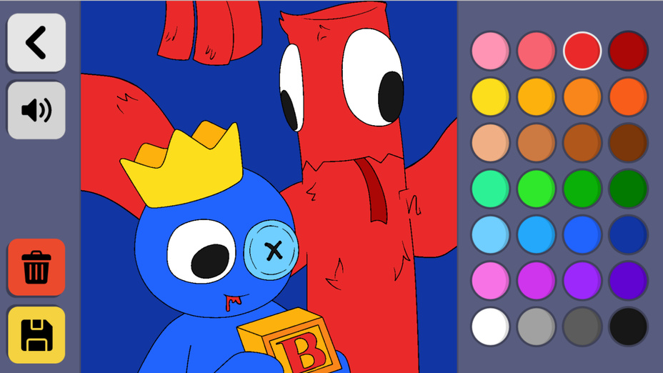 Para comenzar, seleccione una página para colorear de la colección Rainbow Friends. Use la paleta de colores para elegir el tono deseado y haga clic en el área que desea colorear. Puede cambiar de color con la frecuencia que desee y usar la función de zoom para enfocarse en pequeños detalles. Una vez que esté satisfecho con su creación, puede guardarla o imprimirla.