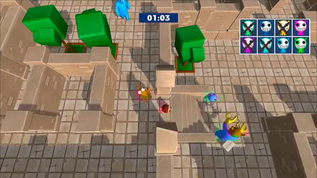 - Oponentes: Ten cuidado con los oponentes que pueden tomar tus cubos si no te escondes debajo de una caja.