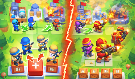 ¡Domina el arte de la fusión! Mantén un ojo en los niveles de tus soldados; fusiona cuando veas unidades idénticas para mejorar rápidamente su fuerza. Esta maniobra táctica mejorará la efectividad de tu equipo en el campo de batalla, permitiéndote despejar niveles de manera más eficiente. ¡Mantente activo haciendo clic para desbloquear diferentes tipos de soldados más rápido!