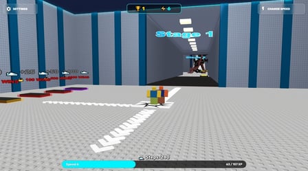 Domina el juego utilizando las cintas de correr para incrementar tu velocidad máxima. Recoge pasos y no te olvides de ganar victorias para desbloquear nuevas áreas que te permitirán obtener multiplicadores de velocidad y llevar tu rendimiento al siguiente nivel. ¡No dejes que los obstáculos te detengan!
