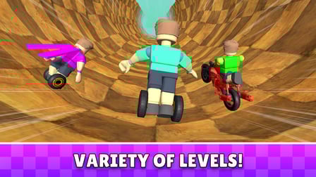 Robux Racing 3D! presenta pistas dinámicas con obstáculos realistas, la capacidad de personalizar tu obby y una atractiva física de muñecos de trapo que mantienen viva la emoción durante las carreras.
