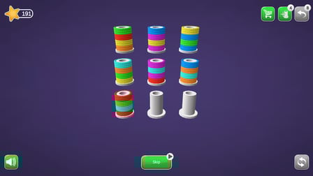 Mejore su jugabilidad experimente con estas estrategias: concéntrese primero en clasificar las cuerdas por color, utilice sus acciones de reversión sabiamente para reconsiderar las decisiones difíciles y aproveche la ventaja de agregar una bobina adicional desde el principio para simplificar los niveles complicados.