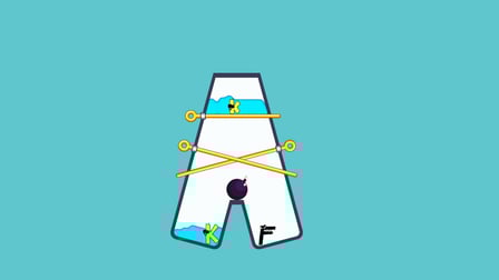 - Evita obstáculos como la malvada letra F, las bombas y la lava.
