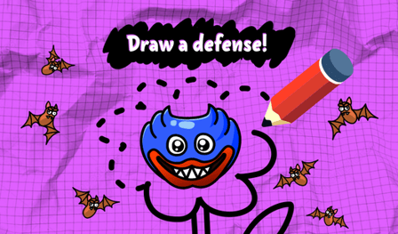 - Usa tu ratón o pantalla táctil para dibujar líneas y formas alrededor de Huggy Wuggy y protegerlo de los murciélagos.