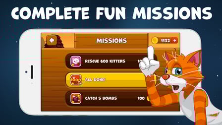 - Subir de nivel: Completar misiones y salvar más gatitos te ayudará a subir de nivel y batir los récords de otros jugadores.