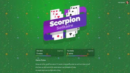 Solitario Escorpión es una variante menos conocida del popular Solitario Spider. Sus orígenes son algo oscuros, pero se cree que fue creado para ofrecer una alternativa más estratégica y desafiante a los juegos de solitario tradicionales. La capacidad de mover pilas enteras de cartas agrega una capa única de complejidad, distinguiéndola de otros juegos de cartas similares.