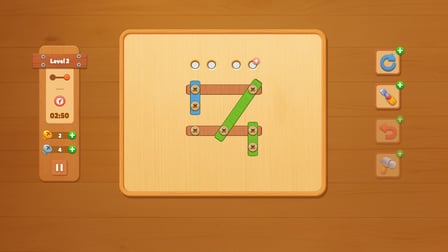 Screw Puzzle: Nut and Bolt cautiva a los jugadores con su combinación de mecánica táctil y desafíos lógicos. El juego gira en torno a la manipulación de tornillos y tablones para lograr la armonía dentro de cada rompecabezas. Su estética de madera y sus niveles progresivamente desafiantes lo convierten en un destacado en el género de los rompecabezas, atrayendo tanto a jugadores ocasionales como a entusiastas de los rompecabezas.