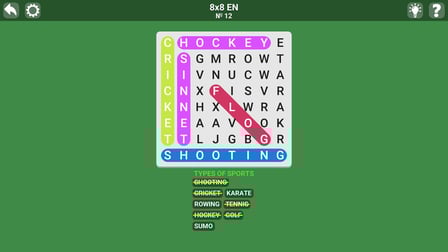 En Palabras de búsqueda con Pistas, navegarás a través de cientos de niveles, cada uno de los cuales presenta temas y desafíos únicos. Con 150 temas diversos, encontrará una gran cantidad de configuraciones de palabras diferentes que pondrán a prueba sus habilidades cognitivas y su atención al detalle. Este juego es apto para todas las edades, por lo que es una opción perfecta para divertirse en familia o jugar en solitario. Buscar palabras con Pistas admite múltiples plataformas, incluidas computadoras de escritorio, Android e iOS, lo que garantiza que pueda disfrutar del juego en cualquier lugar. El intuitivo sistema de pistas agrega un toque innovador, lo que permite a los jugadores abrir la primera letra o una palabra completa cuando necesitan un poco de ayuda adicional. Ya seas un entusiasta experimentado de los rompecabezas de palabras o un jugador casual, este juego ofrece algo para todos.