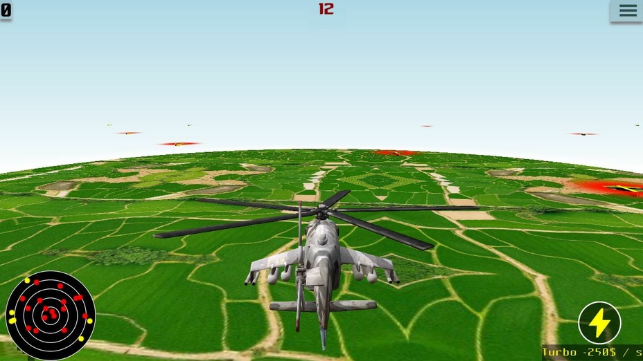 Para jugar, utiliza las teclas de flecha para navegar tu helicóptero por los cielos. La barra espaciadora dispara tus armas contra los drones. Recoge potenciadores en el camino para aumentar tu potencia de fuego y velocidad. Después de cada ronda, gasta tus puntos acumulados en la tienda para comprar nuevas armas o actualizar las existentes para desafíos más difíciles. ¡El modo turbo se activa con la tecla "T", otorgando a tu helicóptero un impulso de velocidad para esquivar drones y alcanzar una puntuación más alta!