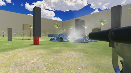 El juego presenta una física de destrucción altamente realista, con efectos visuales detallados como grietas y escombros que caen de las paredes después de la explosión.