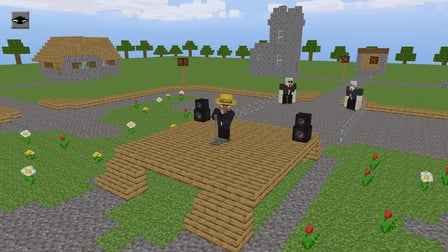 Jugando Aldeano Cantante es una brisa ya sea que estés en tu teléfono o ordenador. Utilice las teclas de flecha para navegar e interactuar con las señales y los aldeanos. ¡Simplemente haga clic en las notas musicales para seleccionar la canción deseada y bailar al ritmo! ¡Disfruta de la diversión espontánea que acompaña a cada actuación!