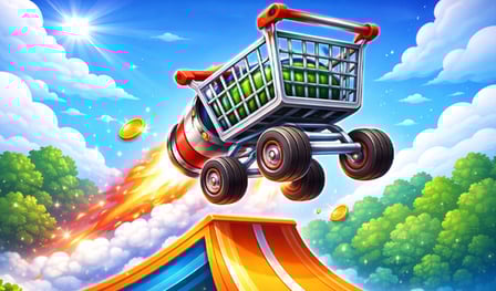 El objetivo del juego es lanzar tu carrito lo más lejos posible a través de rampas. Usa las teclas de flecha para controlar la dirección y la barra espaciadora para despegar. En tu teléfono o computadora, puedes disfrutar de un control fácil y una interfaz intuitiva que se adapta a tus dispositivos. ¡Comienza a acumular monedas para mejorar tu carrito y dominate las alturas!