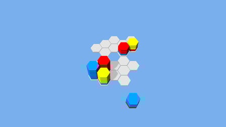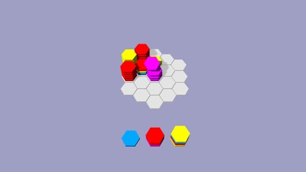 - Arrastre para conectar y apilar hexágonos