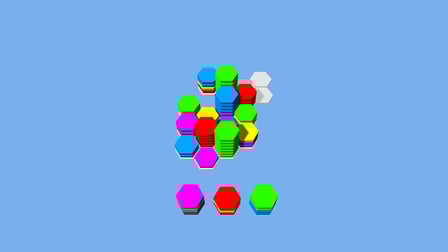 Ordenar y conectar Hexágonos es un emocionante juego de rompecabezas y casual que te reta a combinar hexágonos estratégicamente en una pila. Tu objetivo es reunir 8 o más hexágonos en una pila para sumar puntos y subir en la clasificación. Con sus impresionantes gráficos en 3D, cautivadores efectos visuales y fascinantes paisajes sonoros, te sumergirás en el vibrante mundo de los hexágonos. Este juego ofrece numerosos niveles diseñados para mantenerte entretenido y comprometido. ¡Juega en línea gratis sin descargas y pon a prueba tus habilidades mientras intentas llegar al top 100!