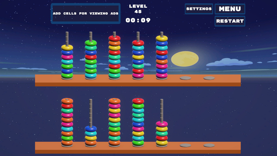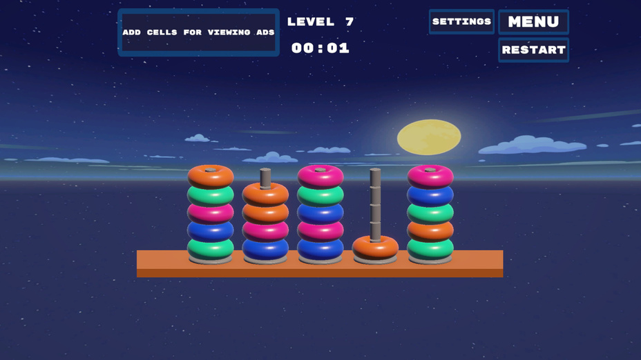 Para sumergirte en esta envolvente experiencia en un ordenador o un teléfono, simplemente sigue estos pasos: 1. Inicia el juego en cualquier navegador moderno. 2. Identifica los coloridos bagels situados en diferentes palos. 3. Haz clic o toca el bagel que desees mover. 4. Elige el palo de destino para el bagel seleccionado, asegurándote de que coincida o tenga espacio para otro bagel. 5. Continúa hasta que todos los bagels estén organizados correctamente por color.