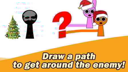 2. Usa el mouse o el dedo para dibujar un camino desde el Sprunki hasta el árbol de Navidad.