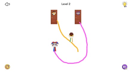 Use su mouse para dibujar rutas en su computadora, o simplemente deslice el dedo en su dispositivo móvil para crear rutas. Las líneas dibujadas dictarán el movimiento de Gummigoo y Pomni, guiándolos a través del circo hasta sus habitaciones.