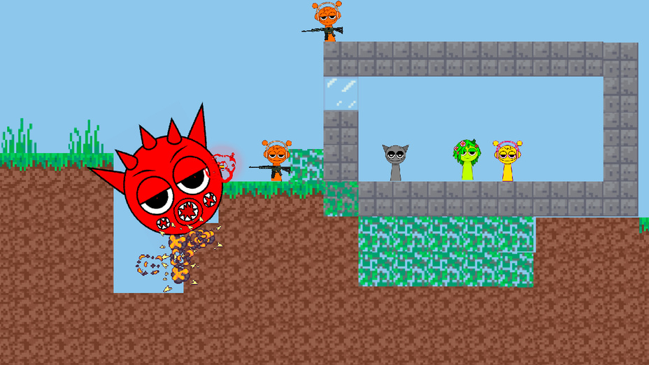 En su computadora, use las teclas de flecha o el mouse para dirigir su Sprunki. Para consumir otros Sprunki, simplemente colóquese sobre ellos y haga clic. En su dispositivo móvil, toque la pantalla para moverse y comer, ¡así de sencillo! No olvides estar atento a los obstáculos militares.