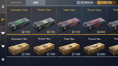 Simplemente haga clic en cualquiera de los casos disponibles en la pantalla para abrirlos. Cada clic inicia una animación en la que se abre el estuche elegido para revelar una piel o cuchillo aleatorio.