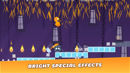 Tienes acceso a una variedad de obstáculos como hielo, sierras, púas y trampolines para diseñar niveles que desafíen a cualquier jugador.