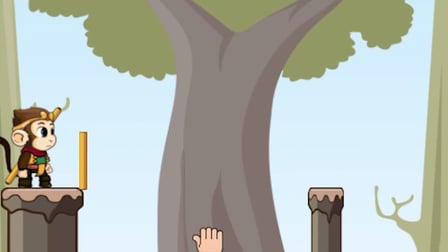 ¿Qué pasa si el palo es demasiado corto o demasiado largo? Si el palo no alcanza la siguiente columna o es demasiado largo, el mono caerá y tendrás que empezar de nuevo.