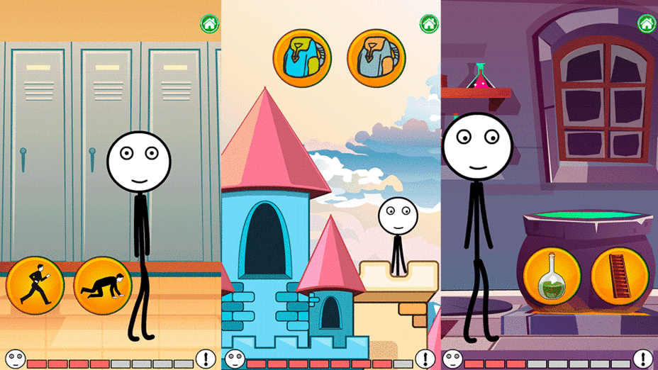 Embárcate en tu misión de escape con Stickman Castle Escape seleccionando las acciones correctas para evitar la captura y encontrar la libertad. Ejercita tu pensamiento estratégico para navegar a través de los peligros y obstáculos del castillo.
