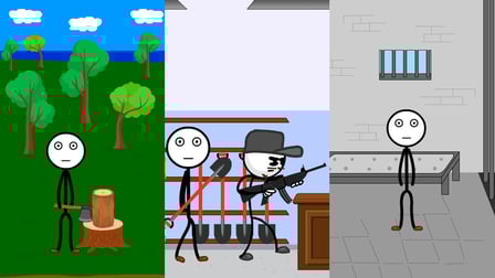 Prepárate para sumergirte en una emocionante aventura con Varita de Stickman, ¡un cautivador juego en línea que combina humor, rompecabezas y acción! En este juego, guiarás a la encantadora e hilarante Varita de Stickman a través de dos emocionantes historias. Ya sea que juegues en tu teléfono o en la computadora, te involucrarás con la intrigante trama y los desafíos únicos que te esperan.