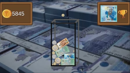 Para jugar a Tenge Merger, simplemente selecciona las monedas y billetes que deseas fusionar. Deja caer los montos en el matraz y asegúrate de combinar dos valores iguales. Una vez que los combines, el nuevo billete o moneda de mayor valor aparecerá. ¡Intenta hacerlo sin llenar demasiado el matraz!