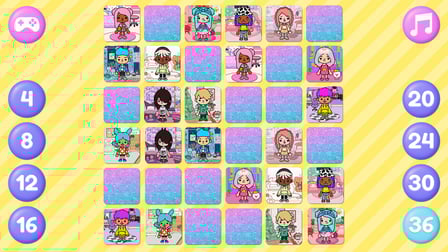 En Toca Memory Match, los jugadores se embarcarán en un viaje para emparejar parejas de personajes conocidos, poniendo a prueba su memoria y habilidades de concentración. Navegue a través de numerosos niveles, cada uno de los cuales ofrece desafíos y oportunidades únicos para mejorar el enfoque. Este juego está diseñado para niños de todas las edades, proporcionando un entorno excelente para el desarrollo cognitivo al tiempo que garantiza una experiencia divertida e interactiva. A medida que los niños avancen en los niveles, se encontrarán con una variedad de rompecabezas atractivos y personajes adorables, lo que hará que cada sesión de juego sea una nueva aventura. Perfecto para niños que buscan mejorar sus habilidades de memoria en un entorno lúdico.
