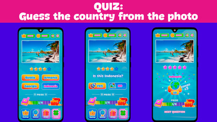 En Trivia Quiz: Adivina el país, tomarás el control de tu intelecto para conquistar miles de preguntas basadas en la geografía. Te encontrarás con numerosos niveles, ubicaciones únicas y una variedad de preguntas desafiantes que ponen a prueba tus conocimientos. Compite con otros jugadores y escala en la clasificación de la tabla de clasificación. Este juego es ideal para niños y adultos que buscan poner a prueba sus habilidades cognitivas de una manera divertida y atractiva. Inicia sesión a diario para recibir recompensas especiales y desbloquear una colección de personajes divertidos para mantener tu juego fresco y emocionante.