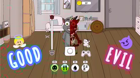 En Troll Cat Juan, tienes la tarea de cuidar a un gato travieso llamado Juan. El juego ofrece una variedad de actividades como alimentar, jugar, limpiar y acostar a Juan. El elemento único del juego es el equilibrio entre ayudar a Juan y gastarle bromas, pero ten cuidado: molestarlo demasiado puede despertar a un monstruo peligroso. Con minijuegos como la caza del ratón y la posibilidad de ganar dinero para comprar más artículos, Troll Cat Juan ofrece una experiencia de juego dinámica y atractiva.