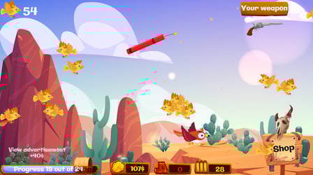 - Combo system: Collect combos to increase your points and earn gold. The more birds you shoot in a row, the more rewards you get!