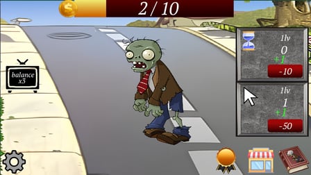 ¡Este juego presenta gráficos caprichosos de zombis, cada uno diseñado con sus propias personalidades! A medida que avanzas, desbloqueas nuevos personajes emocionantes, cada uno de los cuales contribuye a tu potencial general de ganar oro. ¡El tirón emocional de la estrategia, los logros y la competencia hace que los jugadores regresen por más!