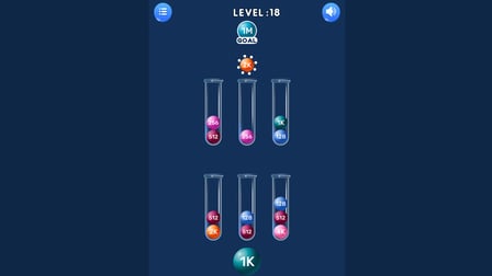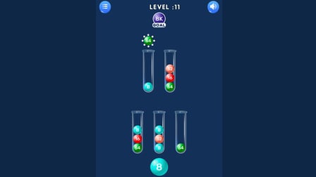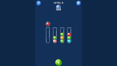 - Triez toutes les boules de la même couleur dans un seul tube pour terminer le niveau.