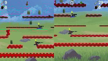 Plongez dans l'action avec Nubik versus Nubik, un jeu qui teste vos compétences stratégiques et de combat. Lorsque vous naviguez à travers différents niveaux, concentrez-vous sur la collecte de bonus pour améliorer vos armes et armures. Chaque joueur doit garder un œil attentif sur sa barre de santé et son armure restante pour rester dans le jeu plus longtemps.