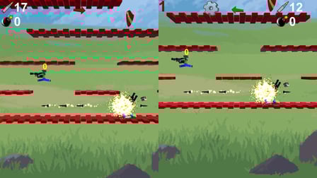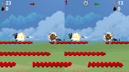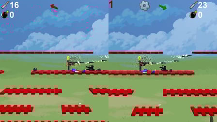 Nubik versus Nubik est un jeu d'action passionnant conçu pour deux personnes où vous pouvez vous engager dans une bataille rapide contre votre adversaire. Jouez en ligne gratuitement sans téléchargement et plongez - vous dans l'atmosphère palpitante du combat stratégique et de la survie. La principale question est de savoir qui détruira qui plus rapidement. Récupérez des bombes, des obus et des armures pour armer votre adversaire. L'armure protège contre les projectiles mais pas contre les bombes larguées. Au contact d'une bombe larguée, une explosion se produira et la bombe explosera après l'expiration du chronomètre. Le numéro de votre armure est indiqué au-dessus de chaque joueur, ajoutant une couche supplémentaire de stratégie à votre gameplay.
