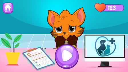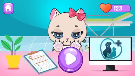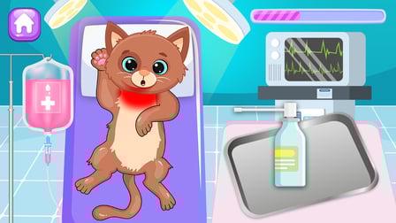 Animal Clinic: Pet Doctor est un jeu occasionnel passionnant conçu spécialement pour les enfants et les adolescents. Dans ce jeu délicieux et réconfortant, vous incarnez un vétérinaire, traitant une variété de chatons mignons qui viennent à votre clinique pour animaux en quête de soins. Jouez en ligne gratuitement sans téléchargement et plongez - vous dans le monde charmant de la simulation de vie vétérinaire. Qu'il s'agisse d'un chaton qui a mal au ventre ou d'un chaton qui a un problème d'oreille, votre mission est de lui prodiguer les meilleurs soins possibles. Au fur et à mesure que vous progresserez dans le jeu, vous ressentirez la joie d'aider ces adorables animaux et d'être satisfait de terminer chaque niveau difficile.