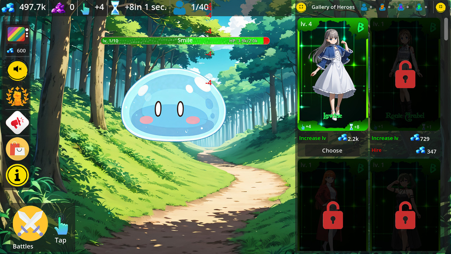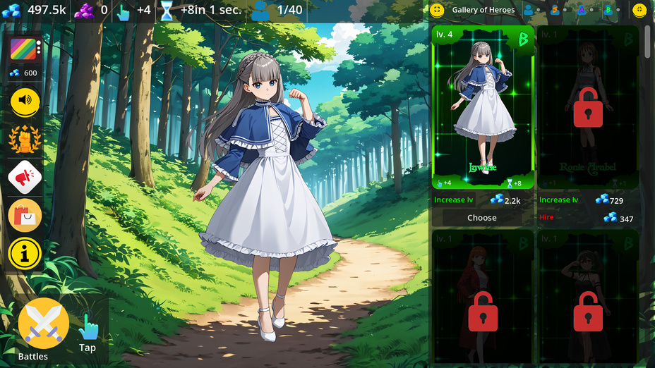Commencer votre aventure est simple. Sur un ordinateur, cliquez et tapez sur l'écran pour vous déplacer rapidement à travers de vastes champs. Sur un appareil mobile, il suffit de taper ou de glisser pour libérer vos héros et collecter des cartes au fil des aventures. Chaque victoire vous récompense avec de nouvelles cartes de personnages, améliorant ainsi votre stratégie dans le jeu !