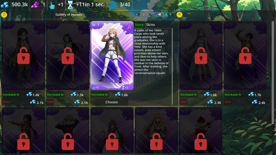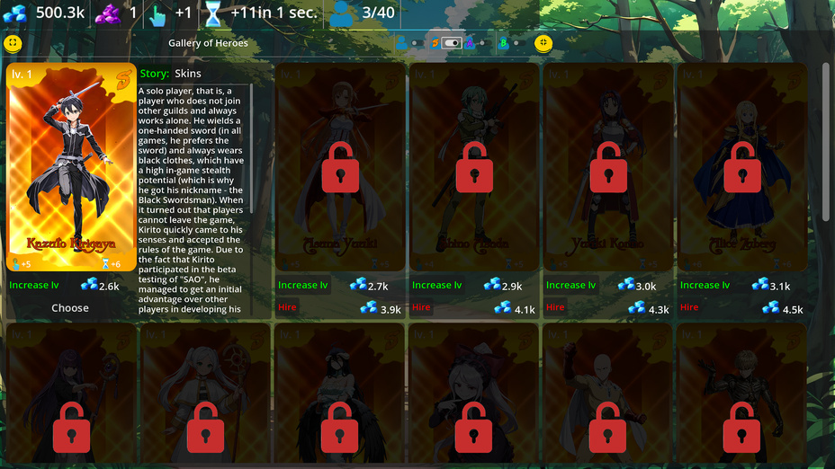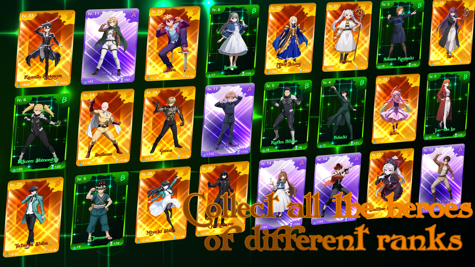 Plongez dans un univers vibrant avec Anime Heroes: An Epic Collection, oĂč chaque clic ouvre les portes Ă de grandes aventures ! Ce jeu gratuit en ligne vous place dans la peau d'un hĂ©ros chargĂ© de collecter des cartes uniques contenant des personnages d'anime puissants, chacun dotĂ© de capacitĂ©s spĂ©ciales.