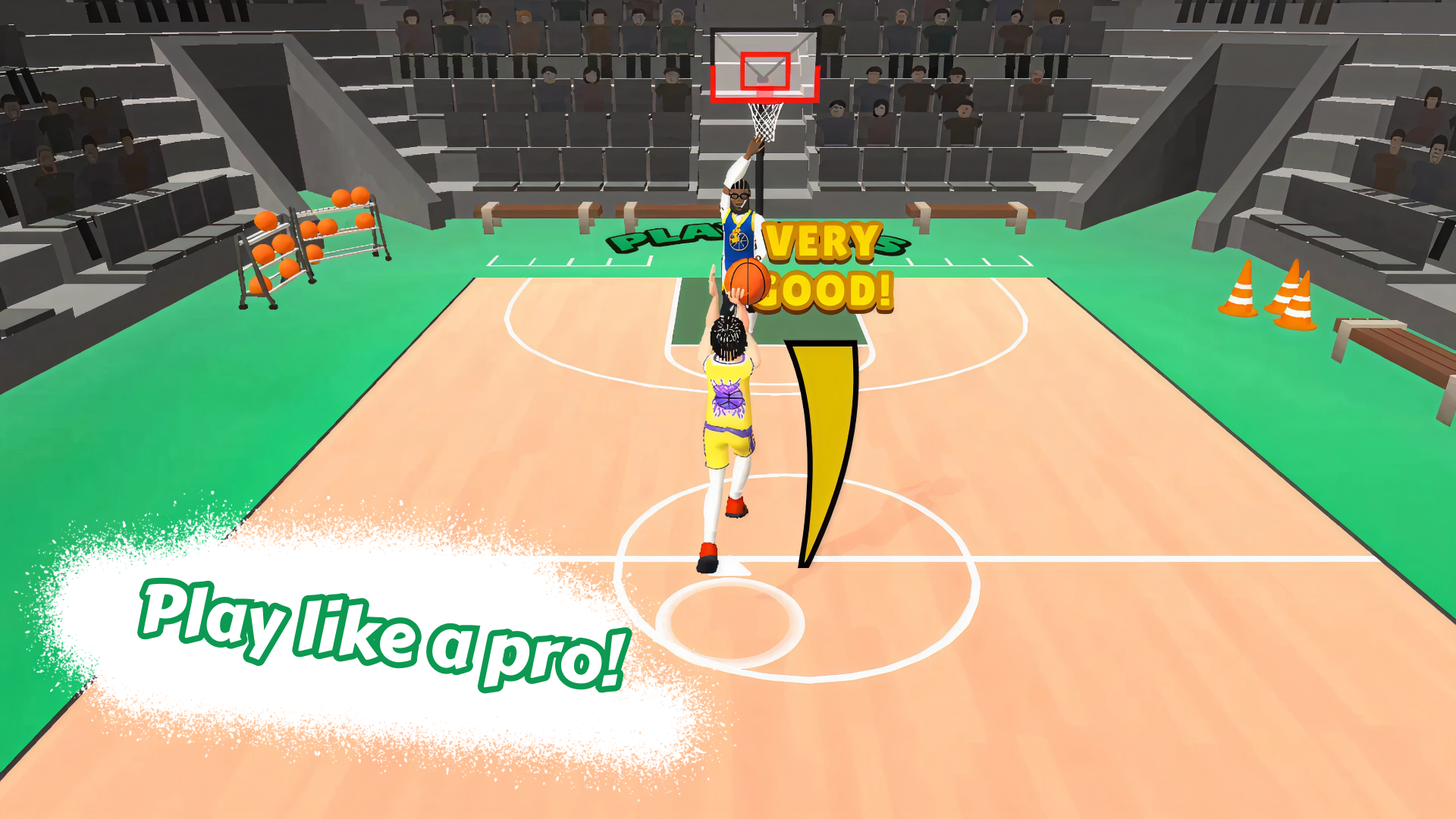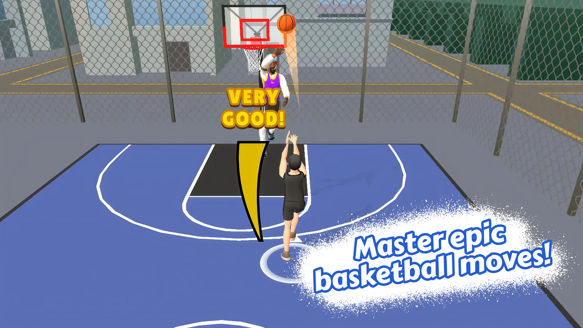 - Sur ordinateur : Utilisez les touches W, A, S et D pour dribbler et vous déplacer. Pour tirer, maintenez la barre d'espace puis relâchez au moment idéal. Pour dunker, approchez-vous du panier et appuyez sur espace !